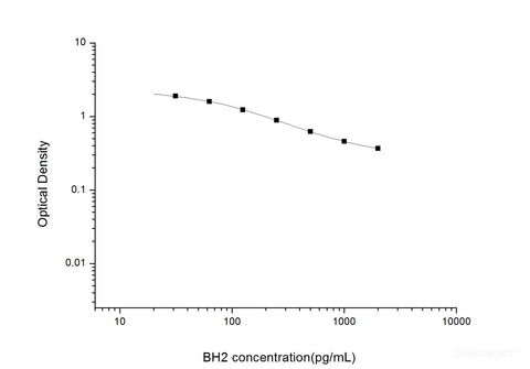 This ELISA kit uses the Competitive-ELISA principle. The micro ELISA plate provided in this kit has been pre-coated with BH2. During the reaction, BH2 in the sample or standard competes with a fixed amount of BH2 on the solid phase supporter for sites on the Biotinylated Detection Ab specific to BH2. Excess conjugate and unbound sample or standard are washed away, and Avidin-Horseradish Peroxidase (HRP) conjugate are added to each micro plate well and incubated. Then a TMB substrate solution is added to each well. The enzyme-substrate reaction is terminated by the addition of stop solution and the color turns from blue to yellow. The optical density (OD) is measured spectrophotometrically at a wavelength of 450 nm ± 2 nm. The concentration of BH2 in tested samples can be calculated by comparing the OD of the samples to the standard curve.