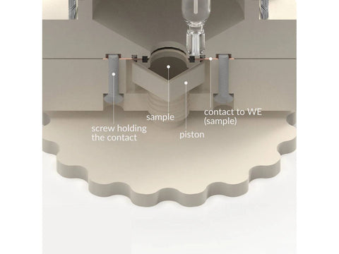 The cell elements are constructed with materials that are inert to the sample (glass and PEEK). It well fits aqueous (FKM/EPDM O-Rings) and organic solvent (FFKM O-Rings) electrolyte requirements. The construction is gas-tight and can be used when the removal and exclusion of contaminants such as oxygen and water is required by bubbling of an inert gas through the electrolyte.