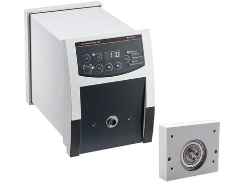 In this model, you can choose between a single-channel or multichannel pump head. Flow rates vary depending on the pump head: the single-channel head has a flow rate of 0.38 — 813 ml/min; for the multi-channel head 0.005 — 364 ml/min. Depending on the focus of the process, the following parameters can be set on the device: Speed, tubing diameter, flow rate display, metering volume, interval dosing and break times. The pump can be calibrated for optimum dosing results.