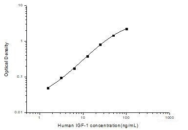 This ELISA kit uses the Sandwich-ELISA principle. The micro ELISA plate provided in this kit has been pre-coated with an antibody specific to Human IGF-1. Standards or samples are added to the micro ELISA plate wells and combined with the specific antibody. Then a biotinylated detection antibody specific for Human IGF-1 and Avidin-Horseradish Peroxidase (HRP) conjugate are added successively to each micro plate well and incubated. Free components are washed away. The substrate solution is added to each well. Only those wells that contain Human IGF-1, biotinylated detection antibody and Avidin-HRP conjugate will appear blue in color. The enzyme-substrate reaction is terminated by the addition of stop solution and the color turns yellow. The optical density (OD) is measured spectrophotometrically at a wavelength of 450 nm ± 2 nm. The OD value is proportional to the concentration of Human IGF-1. You can calculate the concentration of Human IGF-1 in the samples by comparing the OD of the samples to the standard curve.