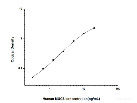 This ELISA kit uses the Sandwich-ELISA principle. The micro ELISA plate provided in this kit has been pre-coated with an antibody specific to Human MUC6. Standards or samples are added to the micro ELISA plate wells and combined with the specific antibody. Then a biotinylated detection antibody specific for Human MUC6 and Avidin-Horseradish Peroxidase (HRP) conjugate are added successively to each micro plate well and incubated. Free components are washed away. The substrate solution is added to each well. Only those wells that contain Human MUC6, biotinylated detection antibody and Avidin-HRP conjugate will appear blue in color. The enzyme-substrate reaction is terminated by the addition of stop solution and the color turns yellow. The optical density (OD) is measured spectrophotometrically at a wavelength of 450 nm ± 2 nm. The OD value is proportional to the concentration of Human MUC6. You can calculate the concentration of Human MUC6 in the samples by comparing the OD of the samples to the standard curve.