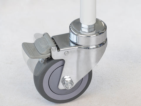 - Mobile version with four steerable wheels and particularly convenient locking brakes on both rear wheels