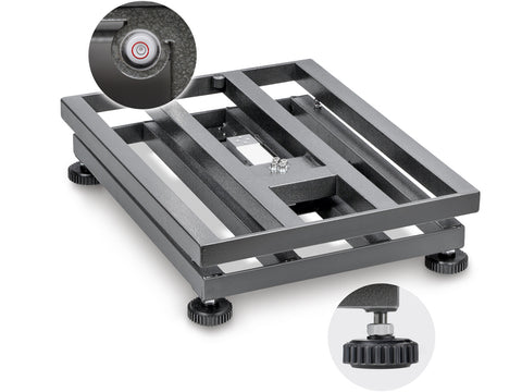 - Platform: weighing plate of stainless steel, painted steel base, silicone-coated aluminium load cell with protection against dust and water splashes IP65. Level indicator and levelling feet for precise levelling of the scale, fitted as standard, to give the most accurate weighing result