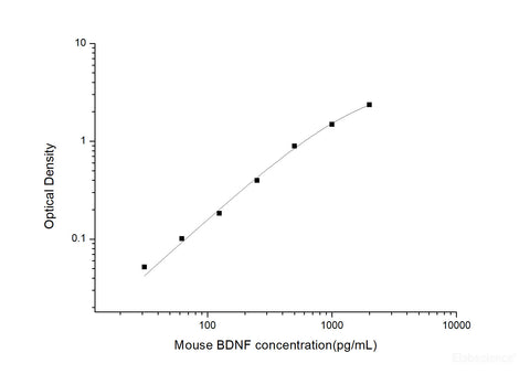 This ELISA kit uses the Sandwich-ELISA principle. The micro ELISA plate provided in this kit has been pre-coated with an antibody specific to Mouse BDNF. Standards or samples are added to the micro ELISA plate wells and combined with the specific antibody. Then a biotinylated detection antibody specific for Mouse BDNF and Avidin-Horseradish Peroxidase (HRP) conjugate are added successively to each micro plate well and incubated. Free components are washed away. The substrate solution is added to each well. Only those wells that contain Mouse BDNF, biotinylated detection antibody and Avidin-HRP conjugate will appear blue in color. The enzyme-substrate reaction is terminated by the addition of stop solution and the color turns yellow. The optical density (OD) is measured spectrophotometrically at a wavelength of 450 nm ± 2 nm. The OD value is proportional to the concentration of Mouse BDNF. You can calculate the concentration of Mouse BDNF in the samples by comparing the OD of the samples to the standard curve.