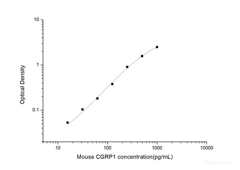 This ELISA kit uses the Sandwich-ELISA principle. The micro ELISA plate provided in this kit has been pre-coated with an antibody specific to Mouse CGRP1. Standards or samples are added to the micro ELISA plate wells and combined with the specific antibody. Then a biotinylated detection antibody specific for Mouse CGRP1 and Avidin-Horseradish Peroxidase (HRP) conjugate are added successively to each micro plate well and incubated. Free components are washed away. The substrate solution is added to each well. Only those wells that contain Mouse CGRP1, biotinylated detection antibody and Avidin-HRP conjugate will appear blue in color. The enzyme-substrate reaction is terminated by the addition of stop solution and the color turns yellow. The optical density (OD) is measured spectrophotometrically at a wavelength of 450 nm ± 2 nm. The OD value is proportional to the concentration of Mouse CGRP1. You can calculate the concentration of Mouse CGRP1 in the samples by comparing the OD of the samples to the standard curve.