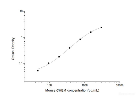 This ELISA kit uses the Sandwich-ELISA principle. The micro ELISA plate provided in this kit has been pre-coated with an antibody specific to Mouse CHEM. Standards or samples are added to the micro ELISA plate wells and combined with the specific antibody. Then a biotinylated detection antibody specific for Mouse CHEM and Avidin-Horseradish Peroxidase (HRP) conjugate are added successively to each micro plate well and incubated. Free components are washed away. The substrate solution is added to each well. Only those wells that contain Mouse CHEM, biotinylated detection antibody and Avidin-HRP conjugate will appear blue in color. The enzyme-substrate reaction is terminated by the addition of stop solution and the color turns yellow. The optical density (OD) is measured spectrophotometrically at a wavelength of 450 nm ± 2 nm. The OD value is proportional to the concentration of Mouse CHEM. You can calculate the concentration of Mouse CHEM in the samples by comparing the OD of the samples to the standard curve.