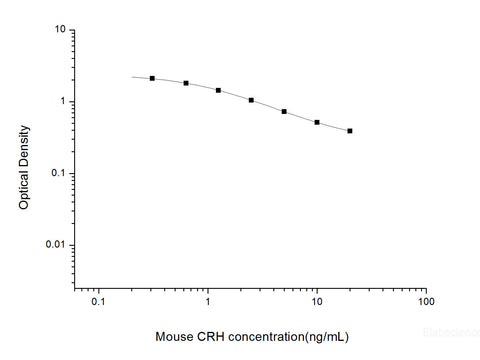 This ELISA kit uses the Competitive-ELISA principle. The micro ELISA plate provided in this kit has been pre-coated with CRH. During the reaction, CRH in the sample or standard competes with a fixed amount of CRH on the solid phase supporter for sites on the Biotinylated Detection Ab specific to CRH. Excess conjugate and unbound sample or standard are washed away, and Avidin-Horseradish Peroxidase (HRP) conjugate are added to each micro plate well and incubated. Then a TMB substrate solution is added to each well. The enzyme-substrate reaction is terminated by the addition of stop solution and the color turns from blue to yellow. The optical density (OD) is measured spectrophotometrically at a wavelength of 450 nm ± 2 nm. The concentration of CRH in tested samples can be calculated by comparing the OD of the samples to the standard curve.