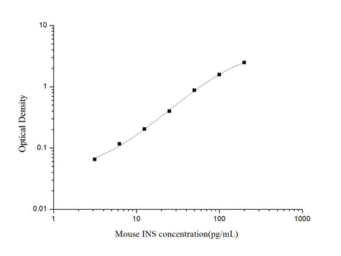 This ELISA kit uses the Sandwich-ELISA principle. The micro ELISA plate provided in this kit has been pre-coated with an antibody specific to Mouse INS. Standards or samples are added to the micro ELISA plate wells and combined with the specific antibody. Then a biotinylated detection antibody specific for Mouse INS and Avidin-Horseradish Peroxidase (HRP) conjugate are added successively to each micro plate well and incubated. Free components are washed away. The substrate solution is added to each well. Only those wells that contain Mouse INS, biotinylated detection antibody and Avidin-HRP conjugate will appear blue in color. The enzyme-substrate reaction is terminated by the addition of stop solution and the color turns yellow. The optical density (OD) is measured spectrophotometrically at a wavelength of 450 nm ± 2 nm. The OD value is proportional to the concentration of Mouse INS. You can calculate the concentration of Mouse INS in the samples by comparing the OD of the samples to the standard curve.