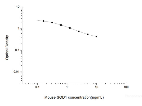 This ELISA kit uses the Competitive-ELISA principle. The micro ELISA plate provided in this kit has been pre-coated with SOD1. During the reaction, SOD1 in the sample or standard competes with a fixed amount of SOD1 on the solid phase supporter for sites on the Biotinylated Detection Ab specific to SOD1. Excess conjugate and unbound sample or standard are washed away, and Avidin-Horseradish Peroxidase (HRP) conjugate are added to each micro plate well and incubated. Then a TMB substrate solution is added to each well. The enzyme-substrate reaction is terminated by the addition of stop solution and the color turns from blue to yellow. The optical density (OD) is measured spectrophotometrically at a wavelength of 450 nm ± 2 nm. The concentration of SOD1 in tested samples can be calculated by comparing the OD of the samples to the standard curve.