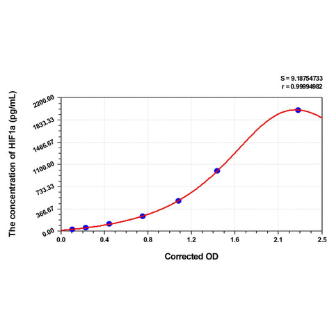 | Test principle | The test principle applied in this kit is Sandwich enzyme immunoassay. The microtiter plate provided in this kit has been pre-coated with an antibody specific to Horse HIF1a. Standards or samples are added to the appropriate microtiter plate wells then with a biotin-conjugated antibody specific to Horse HIF1a. Next, Avidin conjugated to Horseradish Peroxidase (HRP) is added to each microplate well and incubated. After TMB substrate solution is added, only those wells that contain Horse HIF1a, biotin-conjugated antibody and enzyme-conjugated Avidin will exhibit a change in color. The enzyme-substrate reaction is terminated by the addition of sulphuric acid solution and the color change is measured spectrophotometrically at a wavelength of 450nm ± 10nm. The concentration of Horse HIF1a in the samples is then determined by comparing the OD of the samples to the standard curve. |