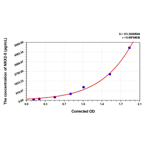 | Test principle | The test principle applied in this kit is Sandwich enzyme immunoassay. The microtiter plate provided in this kit has been pre-coated with an antibody specific to Human NKX2-5. Standards or samples are added to the appropriate microtiter plate wells then with a biotin-conjugated antibody specific to Human NKX2-5. Next, Avidin conjugated to Horseradish Peroxidase (HRP) is added to each microplate well and incubated. After TMB substrate solution is added, only those wells that contain Human NKX2-5, biotin-conjugated antibody and enzyme-conjugated Avidin will exhibit a change in color. The enzyme-substrate reaction is terminated by the addition of sulphuric acid solution and the color change is measured spectrophotometrically at a wavelength of 450nm ± 10nm. The concentration of Human NKX2-5 in the samples is then determined by comparing the OD of the samples to the standard curve. |