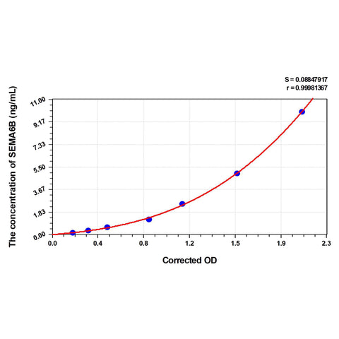 Test principle The test principle applied in this kit is Sandwich enzyme immunoassay. The microtiter plate provided in this kit has been pre-coated with an antibody specific to Human SEMA6B. Standards or samples are added to the appropriate microtiter plate wells then with a biotin-conjugated antibody specific to Human SEMA6B. Next, Avidin conjugated to Horseradish Peroxidase (HRP) is added to each microplate well and incubated. After TMB substrate solution is added, only those wells that contain Human SEMA6B, biotin-conjugated antibody and enzyme-conjugated Avidin will exhibit a change in color. The enzyme-substrate reaction is terminated by the addition of sulphuric acid solution and the color change is measured spectrophotometrically at a wavelength of 450nm ± 10nm. The concentration of Human SEMA6B in the samples is then determined by comparing the OD of the samples to the standard curve.