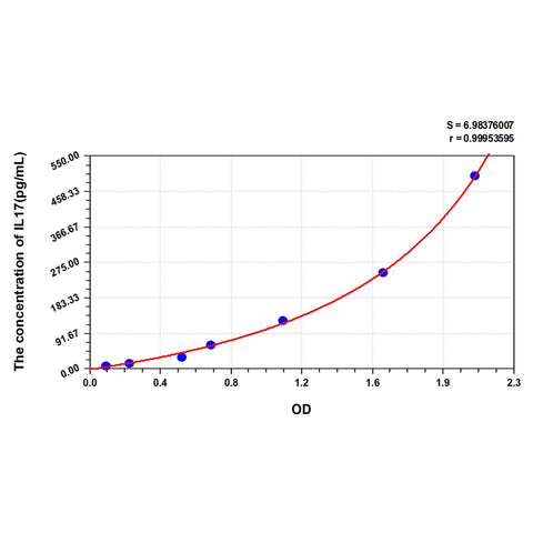 Test principle The test principle applied in this kit is Sandwich enzyme immunoassay. The microtiter plate provided in this kit has been pre-coated with an antibody specific to Mouse IL17. Standards or samples are added to the appropriate microtiter plate wells then with a biotin-conjugated antibody specific to Mouse IL17. Next, Avidin conjugated to Horseradish Peroxidase (HRP) is added to each microplate well and incubated. After TMB substrate solution is added, only those wells that contain Mouse IL17, biotin-conjugated antibody and enzyme-conjugated Avidin will exhibit a change in color. The enzyme-substrate reaction is terminated by the addition of sulphuric acid solution and the color change is measured spectrophotometrically at a wavelength of 450nm ± 10nm. The concentration of Mouse IL17 in the samples is then determined by comparing the OD of the samples to the standard curve.