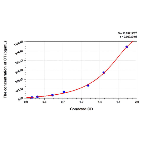 Test principle The test principle applied in this kit is Sandwich enzyme immunoassay. The microtiter plate provided in this kit has been pre-coated with an antibody specific to Rat CT. Standards or samples are added to the appropriate microtiter plate wells then with a biotin-conjugated antibody specific to Rat CT. Next, Avidin conjugated to Horseradish Peroxidase (HRP) is added to each microplate well and incubated. After TMB substrate solution is added, only those wells that contain Rat CT, biotin-conjugated antibody and enzyme-conjugated Avidin will exhibit a change in color. The enzyme-substrate reaction is terminated by the addition of sulphuric acid solution and the color change is measured spectrophotometrically at a wavelength of 450nm ± 10nm. The concentration of Rat CT in the samples is then determined by comparing the OD of the samples to the standard curve.