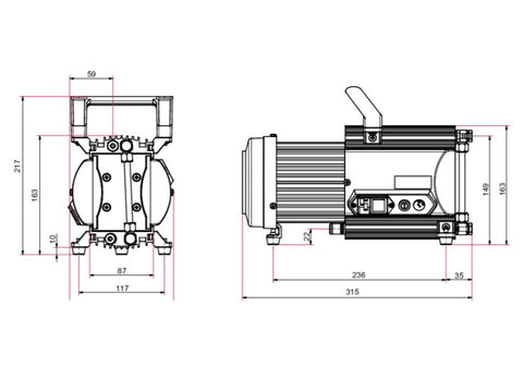 - No hydrocarbons: Completely dry & oil-free diaphragm pump