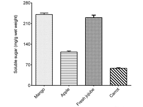 Carbohydrate is one of the important components of plant corpus, and is also the main raw material of metabolism and storage material. The kit is used for the determination of soluble monosaccharides, oligosaccharides and polysaccharides. It has the advantages of high sensitivity, quick convenience and suitable for the determination of microscale samples. The detection principle is anthrone colorimetry. Carbohydrate react with anthrone to produce colored material, which has the maximum absorption peak at 620 nm. The soluble sugar content can be determined by measuring the absorbance value.