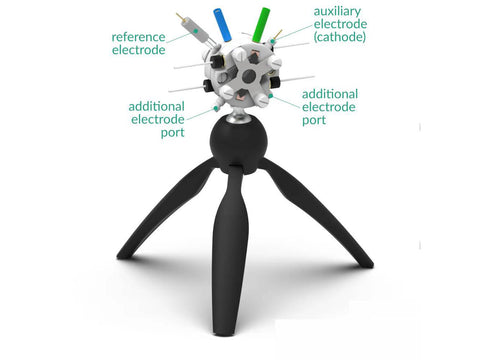 This cell is a sister version of PECF H-Cell 2x1.5 mL. In this cell concept, all elements that stay in contact with an electrolyte or its fumes are made of PTFE and other fluorinated materials (tubing, fittings, and O-Rings). This cell is used wherever PEEK fails, i.e. when using electrolytes containing: