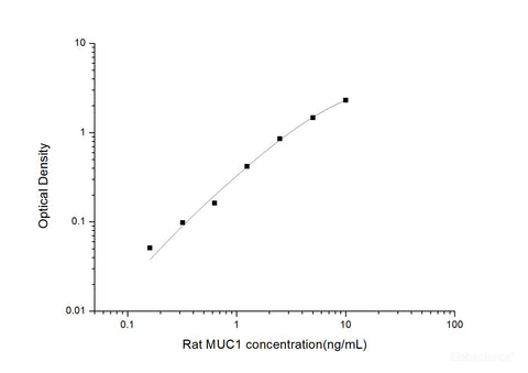 This ELISA kit uses the Sandwich-ELISA principle. The micro ELISA plate provided in this kit has been pre-coated with an antibody specific to Rat MUC1. Standards or samples are added to the micro ELISA plate wells and combined with the specific antibody. Then a biotinylated detection antibody specific for Rat MUC1 and Avidin-Horseradish Peroxidase (HRP) conjugate are added successively to each micro plate well and incubated. Free components are washed away. The substrate solution is added to each well. Only those wells that contain Rat MUC1, biotinylated detection antibody and Avidin-HRP conjugate will appear blue in color. The enzyme-substrate reaction is terminated by the addition of stop solution and the color turns yellow. The optical density (OD) is measured spectrophotometrically at a wavelength of 450 nm ± 2 nm. The OD value is proportional to the concentration of Rat MUC1. You can calculate the concentration of Rat MUC1 in the samples by comparing the OD of the samples to the standard curve.