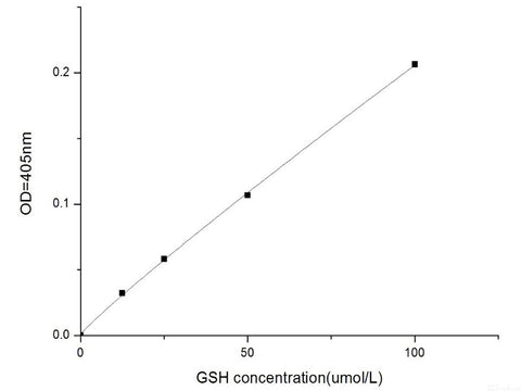 GSSG is reduced to GSH by glutathione reductase, and GSH can react with DTNB to produce GSSG and yellow TNB. The amount of total glutathione (GSSG+GSH) determines the amount of yellow TNB. Thus the total glutathione can be calculated by measuring the OD value at 412 nm. The content of GSSG can be determined by first removing GSH from the sample with appropriate reagent and then using the above reaction principle.