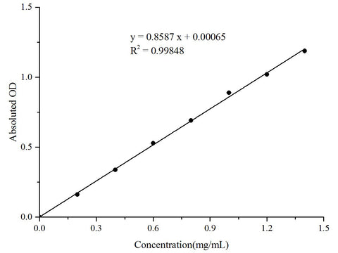 | Concentration (mg/mL) | 0 | 0.2 | 0.4 | 0.6 | 0.8 | 1.0 | 1.2 | 1.4 |