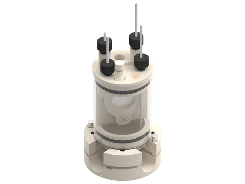 The cell elements are constructed with materials that are inert to the sample (glass and PEEK). It well fits aqueous (FKM/EPDM O-Rings) and organic solvent (FFKM O-Rings) electrolyte requirements. The construction is gas-tight and can be used when the removal and exclusion of contaminants such as oxygen and water is required by bubbling of an inert gas through the electrolyte.