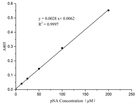 - The pNA (4-nitroaniline) is toxic to the human body. Please be careful during operating, and pay attention to avoid direct contact with the human body or inhalation. The pNA will solidify at a lower temperature and stick to the bottom, wall or cap of centrifuge tube. It can be used until it is completely melted in a water bath at 20~25°C for a moment.