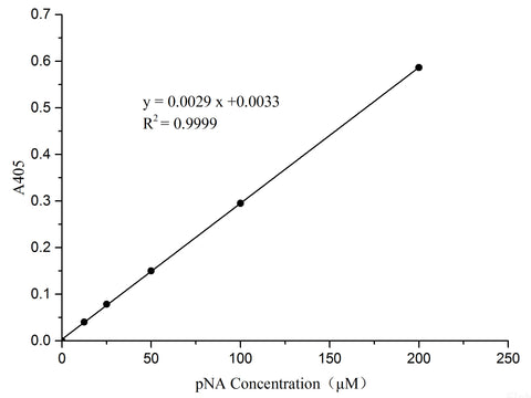 - The pNA (4-nitroaniline) is toxic to the human body. Please be careful during operating, and pay attention to avoid direct contact with the human body or inhalation. The pNA will solidify at a lower temperature and stick to the bottom, wall or cap of centrifuge tube. It can be used until it is completely melted in a water bath at 20~25°C for a moment.