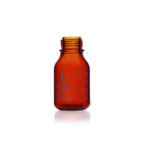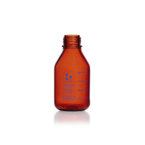 The DURAN® pressure plus+ GL 45 bottles offer a safer option for laboratory applications involving a vacuum or pressure. Standard glass laboratory bottles are not designed to safely withstand pressure differentials. As a result of a modified geometry, the pressure plus+ bottles have a guaranteed pressure-resistance, and consequently offer optimal safety for both the user and contents. The special geometry still conforms to ISO 4796-1:2016 to maintain instrument compatibility. The pressure plus+ bottles are certified in accordance with DIN EN 1595. The bottles are moulded from high-purity, ambered, USP/EP Type I borosilicate glass 3.3, renowned for its excellent thermal performance, and high resistance to chemical attack. The ambered glass meets ultraviolet light protection limits as specified in the current revisions of the USP and EP 3.2.1. The bottles feature an easy-to-read graduated volume scale printed in a distinctive blue enamel. Permanent Retrace Code on each bottle for manufacturing lot traceability.