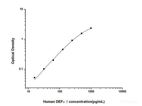 This ELISA kit uses the Sandwich-ELISA principle. The micro ELISA plate provided in this kit has been pre-coated with an antibody specific to Human DEFα5. Standards or samples are added to the micro ELISA plate wells and combined with the specific antibody. Then a biotinylated detection antibody specific for Human DEFα5 and Avidin-Horseradish Peroxidase (HRP) conjugate are added successively to each micro plate well and incubated. Free components are washed away. The substrate solution is added to each well. Only those wells that contain Human DEFα5, biotinylated detection antibody and Avidin-HRP conjugate will appear blue in color. The enzyme-substrate reaction is terminated by the addition of stop solution and the color turns yellow. The optical density (OD) is measured spectrophotometrically at a wavelength of 450 nm ± 2 nm. The OD value is proportional to the concentration of Human DEFα5. You can calculate the concentration of Human DEFα5 in the samples by comparing the OD of the samples to the standard curve.