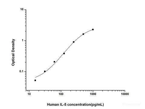 This ELISA kit uses the Sandwich-ELISA principle. The micro ELISA plate provided in this kit has been pre-coated with an antibody specific to Human IL-5. Standards or samples are added to the micro ELISA plate wells and combined with the specific antibody. Then a biotinylated detection antibody specific for Human IL-5 and Avidin-Horseradish Peroxidase (HRP) conjugate are added successively to each micro plate well and incubated. Free components are washed away. The substrate solution is added to each well. Only those wells that contain Human IL-5, biotinylated detection antibody and Avidin-HRP conjugate will appear blue in color. The enzyme-substrate reaction is terminated by the addition of stop solution and the color turns yellow. The optical density (OD) is measured spectrophotometrically at a wavelength of 450 nm ± 2 nm. The OD value is proportional to the concentration of Human IL-5. You can calculate the concentration of Human IL-5 in the samples by comparing the OD of the samples to the standard curve.