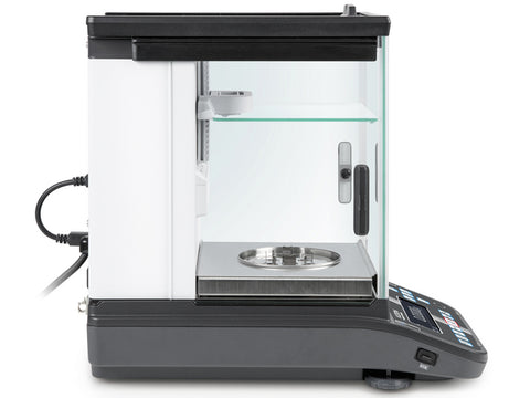 - Large glass draught shield with 3 sliding doors for easy access to the items being weighed