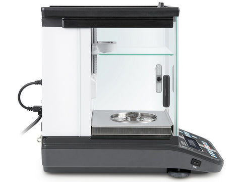 - Large glass draught shield with 3 sliding doors for easy access to the items being weighed