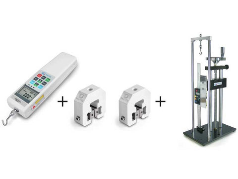 - All-in-One: test stand with digital force-measuring device and 2 clamps