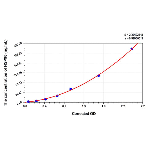 Test principle The test principle applied in this kit is Sandwich enzyme immunoassay. The microtiter plate provided in this kit has been pre-coated with an antibody specific to Cattle HSP90. Standards or samples are added to the appropriate microtiter plate wells then with a biotin-conjugated antibody specific to Cattle HSP90. Next, Avidin conjugated to Horseradish Peroxidase (HRP) is added to each microplate well and incubated. After TMB substrate solution is added, only those wells that contain Cattle HSP90, biotin-conjugated antibody and enzyme-conjugated Avidin will exhibit a change in color. The enzyme-substrate reaction is terminated by the addition of sulphuric acid solution and the color change is measured spectrophotometrically at a wavelength of 450nm ± 10nm. The concentration of Cattle HSP90 in the samples is then determined by comparing the OD of the samples to the standard curve.