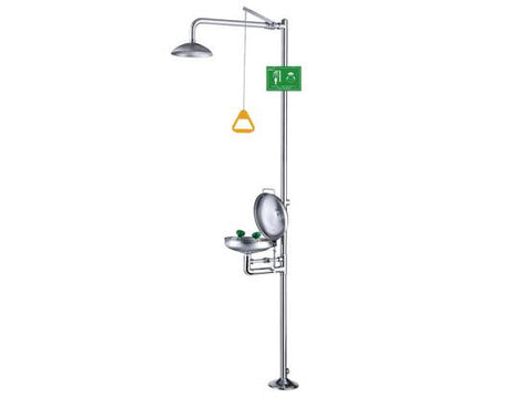 - Dual-Function Safety System – Combines an emergency shower and eyewash station, ensuring complete decontamination.