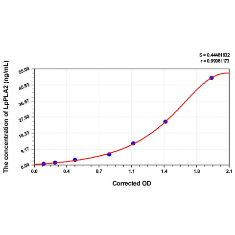 Test principle The test principle applied in this kit is Sandwich enzyme immunoassay. The microtiter plate provided in this kit has been pre-coated with an antibody specific to Human LpPLA2, and the Human LpPLA2 standard plate wells that pre-coated using protein-related techniques are provided separately. Standard/Sample Diluent Buffer or samples are added to the appropriate microtiter plate wells ,then added a HRP-conjugated antibody specific to Human LpPLA2. After TMB substrate solution is added, only those wells that contain Human LpPLA2 and HRP-conjugated antibody will exhibit a change in color. The enzyme-substrate reaction is terminated by the addition of sulphuric acid solution and the color change is measured spectrophotometrically at a wavelength of 450nm ± 10nm. The concentration of Human LpPLA2 in the samples is then determined by comparing the OD of the samples to the standard curve.