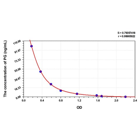 Test principle This assay employs the competitive inhibition enzyme immunoassay technique. The microtiter plate provided in this kit has been pre-coated with Human PG antigen, and the Human PG standard plate wells that pre-coated using protein-related techniques are provided separately. Standard/Sample Diluent Buffer or samples are added to the appropriate microtiter plate wells ,then added a HRP-conjugated antibody specific to Human PG to each microplate well and incubated . After TMB substrate solution is added, the enzyme-substrate reaction is terminated by the addition of sulphuric acid solution and the color change is measured spectrophotometrically at a wavelength of 450nm ±10nm. The concentration of Human PG in the samples is then determined by comparing the OD of the samples to the standard curve.