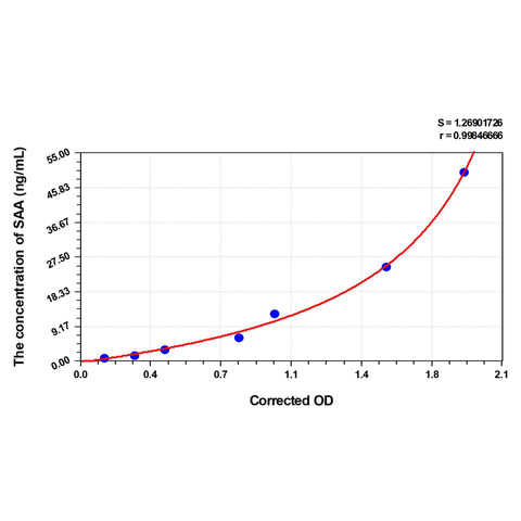 | Test principle | The test principle applied in this kit is Sandwich enzyme immunoassay. The microtiter plate provided in this kit has been pre-coated with an antibody specific to Human SAA, and the Human SAA standard plate wells that pre-coated using protein-related techniques are provided separately. Standard/Sample Diluent Buffer or samples are added to the appropriate microtiter plate wells ,then added a HRP-conjugated antibody specific to Human SAA. After TMB substrate solution is added, only those wells that contain Human SAA and HRP-conjugated antibody will exhibit a change in color. The enzyme-substrate reaction is terminated by the addition of sulphuric acid solution and the color change is measured spectrophotometrically at a wavelength of 450nm ± 10nm. The concentration of Human SAA in the samples is then determined by comparing the OD of the samples to the standard curve. |