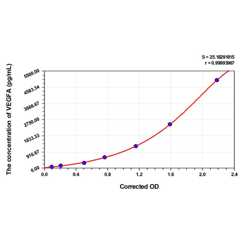 Test principle The test principle applied in this kit is Sandwich enzyme immunoassay. The microtiter plate provided in this kit has been pre-coated with an antibody specific to Human VEGFA, and the Human VEGFA standard plate wells that pre-coated using protein-related techniques are provided separately. Standard/Sample Diluent Buffer or samples are added to the appropriate microtiter plate wells ,then added a HRP-conjugated antibody specific to Human VEGFA. After TMB substrate solution is added, only those wells that contain Human VEGFA and HRP-conjugated antibody will exhibit a change in color. The enzyme-substrate reaction is terminated by the addition of sulphuric acid solution and the color change is measured spectrophotometrically at a wavelength of 450nm ± 10nm. The concentration of Human VEGFA in the samples is then determined by comparing the OD of the samples to the standard curve.
