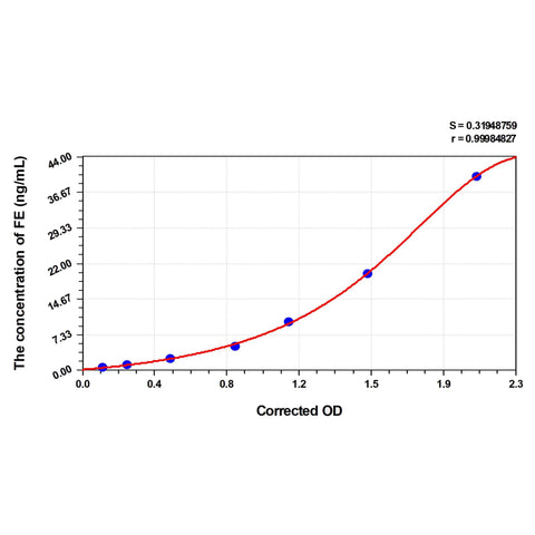 Test principle The test principle applied in this kit is Sandwich enzyme immunoassay. The microtiter plate provided in this kit has been pre-coated with an antibody specific to Mouse FE, and the Mouse FE standard plate wells that pre-coated using protein-related techniques are provided separately. Standard/Sample Diluent Buffer or samples are added to the appropriate microtiter plate wells ,then added a HRP-conjugated antibody specific to Mouse FE. After TMB substrate solution is added, only those wells that contain Mouse FE and HRP-conjugated antibody will exhibit a change in color. The enzyme-substrate reaction is terminated by the addition of sulphuric acid solution and the color change is measured spectrophotometrically at a wavelength of 450nm ± 10nm. The concentration of Mouse FE in the samples is then determined by comparing the OD of the samples to the standard curve.