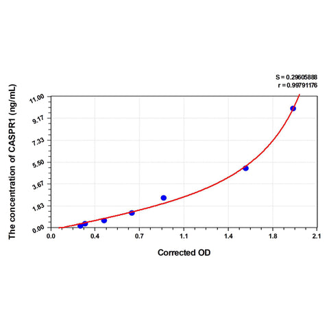 | Test principle | The test principle applied in this kit is Sandwich enzyme immunoassay. The microtiter plate provided in this kit has been pre-coated with an antibody specific to Human CASPR1. Standards or samples are added to the appropriate microtiter plate wells then with a biotin-conjugated antibody specific to Human CASPR1. Next, Avidin conjugated to Horseradish Peroxidase (HRP) is added to each microplate well and incubated. After TMB substrate solution is added, only those wells that contain Human CASPR1, biotin-conjugated antibody and enzyme-conjugated Avidin will exhibit a change in color. The enzyme-substrate reaction is terminated by the addition of sulphuric acid solution and the color change is measured spectrophotometrically at a wavelength of 450nm ± 10nm. The concentration of Human CASPR1 in the samples is then determined by comparing the OD of the samples to the standard curve. |