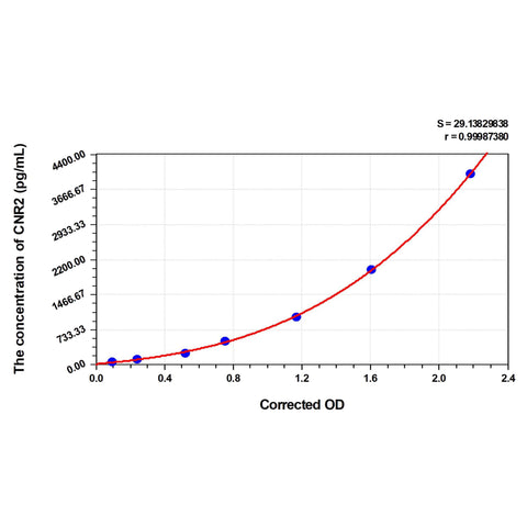 Test principle The test principle applied in this kit is Sandwich enzyme immunoassay. The microtiter plate provided in this kit has been pre-coated with an antibody specific to Human CNR2. Standards or samples are added to the appropriate microtiter plate wells then with a biotin-conjugated antibody specific to Human CNR2. Next, Avidin conjugated to Horseradish Peroxidase (HRP) is added to each microplate well and incubated. After TMB substrate solution is added, only those wells that contain Human CNR2, biotin-conjugated antibody and enzyme-conjugated Avidin will exhibit a change in color. The enzyme-substrate reaction is terminated by the addition of sulphuric acid solution and the color change is measured spectrophotometrically at a wavelength of 450nm ± 10nm. The concentration of Human CNR2 in the samples is then determined by comparing the OD of the samples to the standard curve.