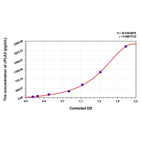 | Test principle | The test principle applied in this kit is Sandwich enzyme immunoassay. The microtiter plate provided in this kit has been pre-coated with an antibody specific to Human cPLA2. Standards or samples are added to the appropriate microtiter plate wells then with a biotin-conjugated antibody specific to Human cPLA2. Next, Avidin conjugated to Horseradish Peroxidase (HRP) is added to each microplate well and incubated. After TMB substrate solution is added, only those wells that contain Human cPLA2, biotin-conjugated antibody and enzyme-conjugated Avidin will exhibit a change in color. The enzyme-substrate reaction is terminated by the addition of sulphuric acid solution and the color change is measured spectrophotometrically at a wavelength of 450nm ± 10nm. The concentration of Human cPLA2 in the samples is then determined by comparing the OD of the samples to the standard curve. |