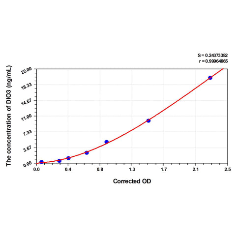 | Test principle | The test principle applied in this kit is Sandwich enzyme immunoassay. The microtiter plate provided in this kit has been pre-coated with an antibody specific to Human DIO3. Standards or samples are added to the appropriate microtiter plate wells then with a biotin-conjugated antibody specific to Human DIO3. Next, Avidin conjugated to Horseradish Peroxidase (HRP) is added to each microplate well and incubated. After TMB substrate solution is added, only those wells that contain Human DIO3, biotin-conjugated antibody and enzyme-conjugated Avidin will exhibit a change in color. The enzyme-substrate reaction is terminated by the addition of sulphuric acid solution and the color change is measured spectrophotometrically at a wavelength of 450nm ± 10nm. The concentration of Human DIO3 in the samples is then determined by comparing the OD of the samples to the standard curve. |