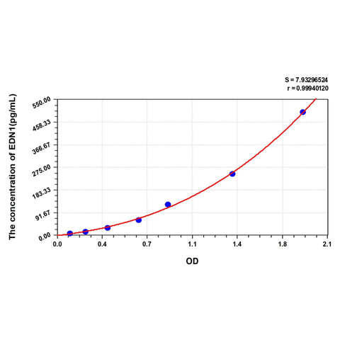 | Test principle | The test principle applied in this kit is Sandwich enzyme immunoassay. The microtiter plate provided in this kit has been pre-coated with an antibody specific to Human ET-1. Standards or samples are added to the appropriate microtiter plate wells then with a biotin-conjugated antibody specific to Human ET-1. Next, Avidin conjugated to Horseradish Peroxidase (HRP) is added to each microplate well and incubated. After TMB substrate solution is added, only those wells that contain Human ET-1, biotin-conjugated antibody and enzyme-conjugated Avidin will exhibit a change in color. The enzyme-substrate reaction is terminated by the addition of sulphuric acid solution and the color change is measured spectrophotometrically at a wavelength of 450nm ± 10nm. The concentration of Human ET-1 in the samples is then determined by comparing the OD of the samples to the standard curve. |