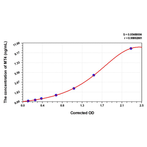| Test principle | The test principle applied in this kit is Sandwich enzyme immunoassay. The microtiter plate provided in this kit has been pre-coated with an antibody specific to Human MT4. Standards or samples are added to the appropriate microtiter plate wells then with a biotin-conjugated antibody specific to Human MT4. Next, Avidin conjugated to Horseradish Peroxidase (HRP) is added to each microplate well and incubated. After TMB substrate solution is added, only those wells that contain Human MT4, biotin-conjugated antibody and enzyme-conjugated Avidin will exhibit a change in color. The enzyme-substrate reaction is terminated by the addition of sulphuric acid solution and the color change is measured spectrophotometrically at a wavelength of 450nm ± 10nm. The concentration of Human MT4 in the samples is then determined by comparing the OD of the samples to the standard curve. |