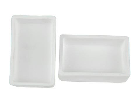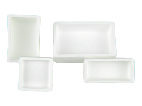 Magnesium Oxide Rectangular Trays and crucibles are good for the application of ultra high temperature processes up to 4000 °F (2200 °C). It is a better alternative to Alumina (Al2O3) tray due to their superior chemical resistance and its inertness to metals, slags and superconductor compounds.