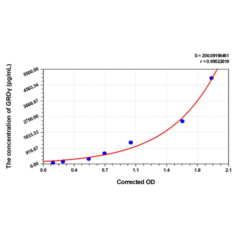 | Test principle | The test principle applied in this kit is Sandwich enzyme immunoassay. The microtiter plate provided in this kit has been pre-coated with an antibody specific to Mouse GROγ. Standards or samples are added to the appropriate microtiter plate wells then with a biotin-conjugated antibody specific to Mouse GROγ. Next, Avidin conjugated to Horseradish Peroxidase (HRP) is added to each microplate well and incubated. After TMB substrate solution is added, only those wells that contain Mouse GROγ, biotin-conjugated antibody and enzyme-conjugated Avidin will exhibit a change in color. The enzyme-substrate reaction is terminated by the addition of sulphuric acid solution and the color change is measured spectrophotometrically at a wavelength of 450nm ± 10nm. The concentration of Mouse GROγ in the samples is then determined by comparing the OD of the samples to the standard curve. |