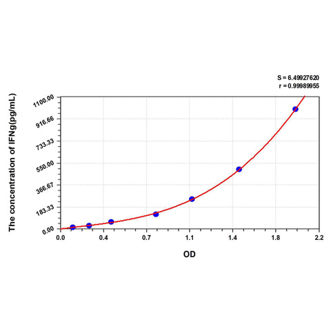 Test principle The test principle applied in this kit is Sandwich enzyme immunoassay. The microtiter plate provided in this kit has been pre-coated with an antibody specific to Mouse IFNg. Standards or samples are added to the appropriate microtiter plate wells then with a biotin-conjugated antibody specific to Mouse IFNg. Next, Avidin conjugated to Horseradish Peroxidase (HRP) is added to each microplate well and incubated. After TMB substrate solution is added, only those wells that contain Mouse IFNg, biotin-conjugated antibody and enzyme-conjugated Avidin will exhibit a change in color. The enzyme-substrate reaction is terminated by the addition of sulphuric acid solution and the color change is measured spectrophotometrically at a wavelength of 450nm ± 10nm. The concentration of Mouse IFNg in the samples is then determined by comparing the OD of the samples to the standard curve.