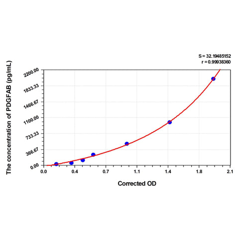 | Test principle | The test principle applied in this kit is Sandwich enzyme immunoassay. The microtiter plate provided in this kit has been pre-coated with an antibody specific to Mouse PDGFAB. Standards or samples are added to the appropriate microtiter plate wells then with a biotin-conjugated antibody specific to Mouse PDGFAB. Next, Avidin conjugated to Horseradish Peroxidase (HRP) is added to each microplate well and incubated. After TMB substrate solution is added, only those wells that contain Mouse PDGFAB, biotin-conjugated antibody and enzyme-conjugated Avidin will exhibit a change in color. The enzyme-substrate reaction is terminated by the addition of sulphuric acid solution and the color change is measured spectrophotometrically at a wavelength of 450nm ± 10nm. The concentration of Mouse PDGFAB in the samples is then determined by comparing the OD of the samples to the standard curve. |